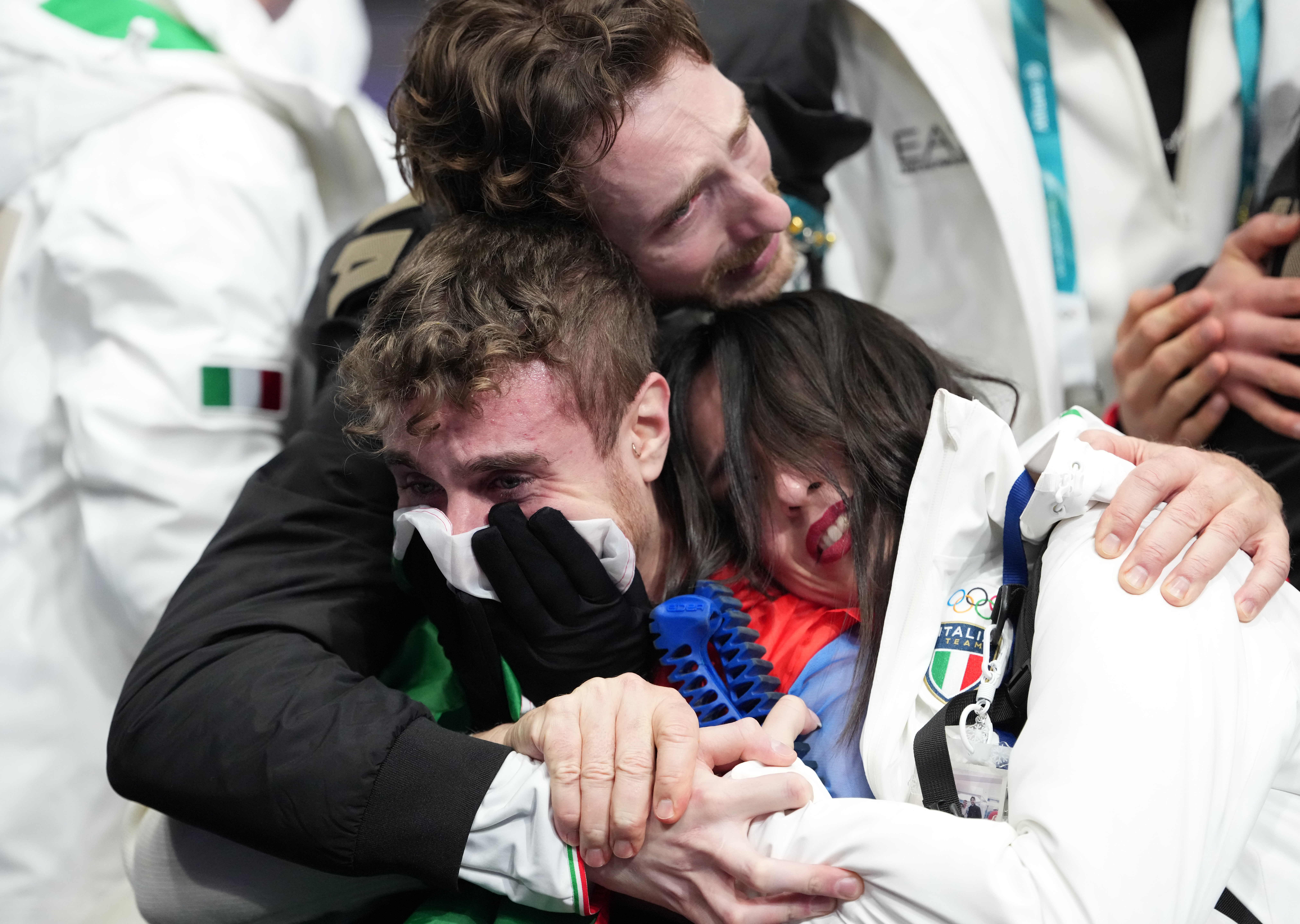 2月8日,意大利队选手里佐在格式溜冰项目团体赛男单解放滑完赛后。新华社记者 薛宇舸 摄