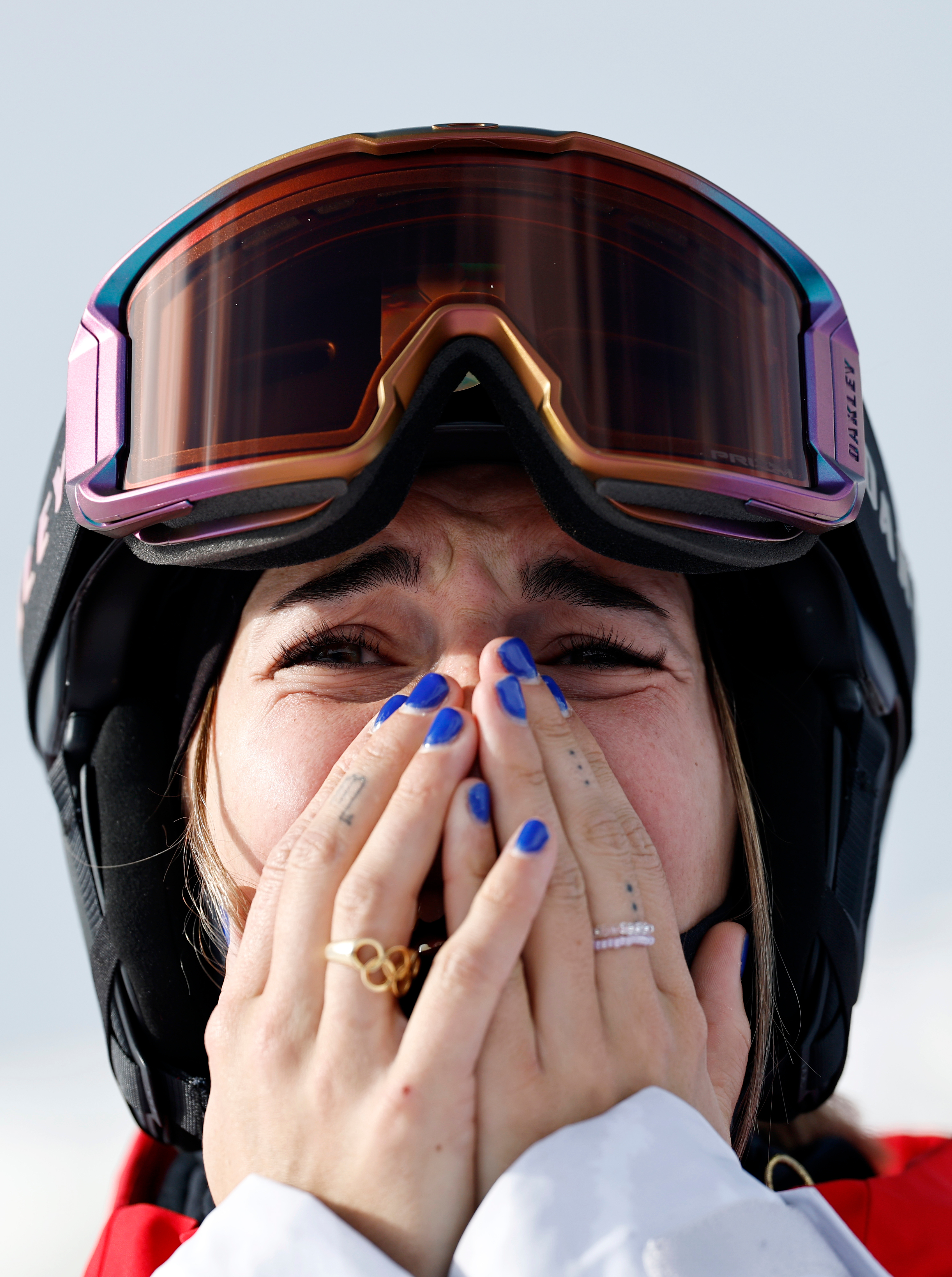 2月11日,法国选手珀赖因·拉丰在解放式滑雪女子雪上手段决赛后。新华社记者 王鹏 摄