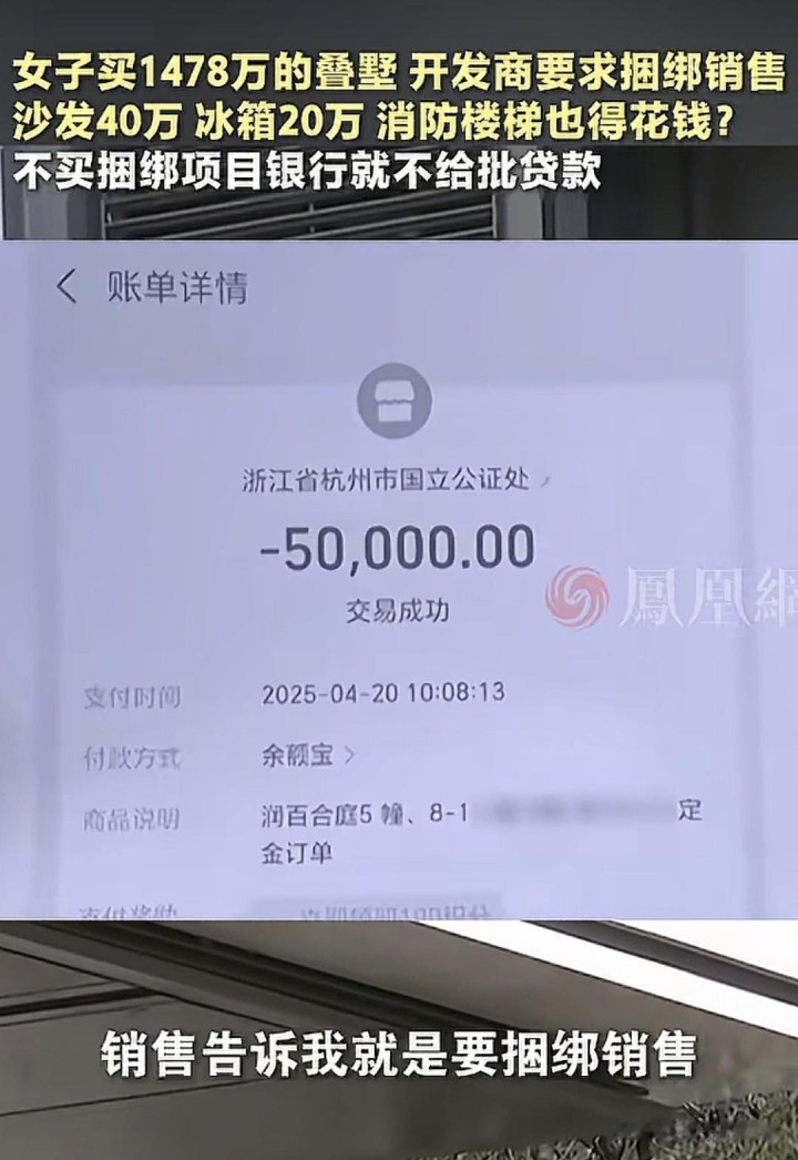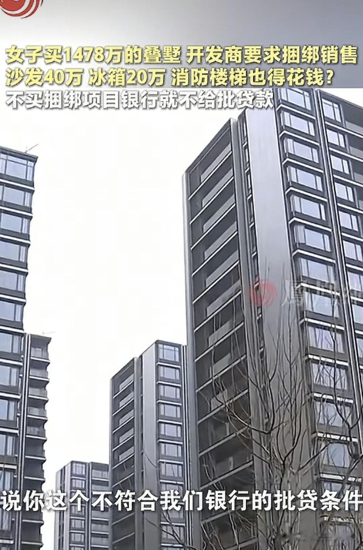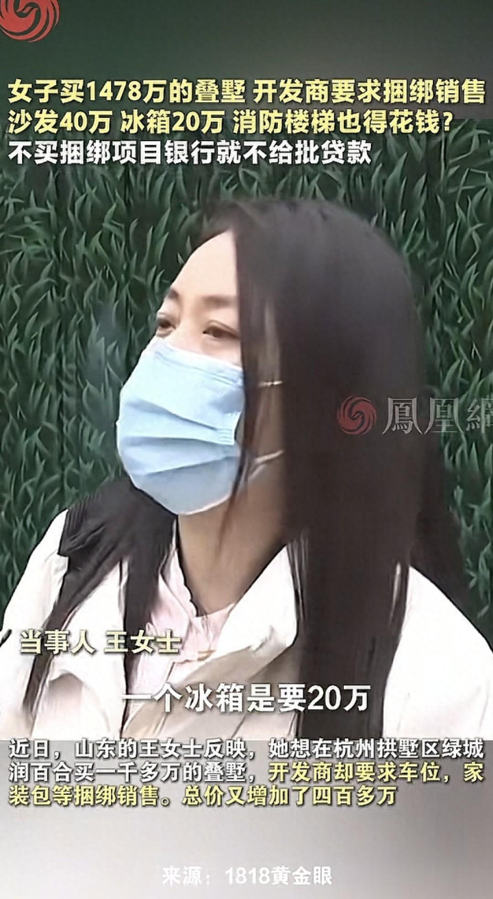 近日,山东的王女士告诉媒体《1818黄金眼》我方在杭州买了一套叠墅,耗尽1478万的价钱,在现时的房产环境下这种优质客户很少了[捂脸]。成果……被诞生商拿握了,必须购买指定系结产品才行,要否则贷款没戏。