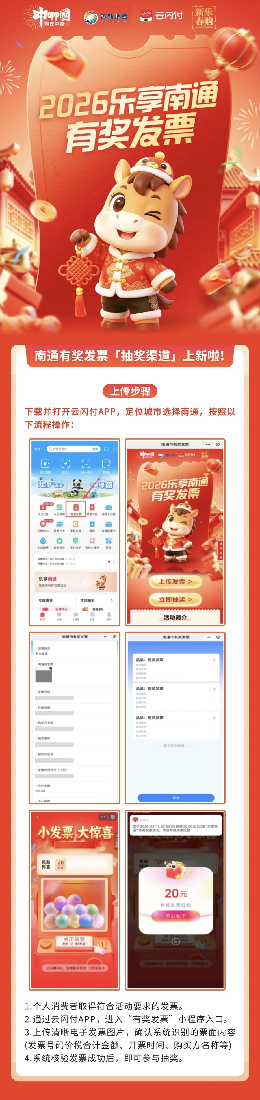 2月15日开动,在南通主城区吃饭、住宿阔绰满150元,开具数字化电子发票,就有契机抽中现款红包。