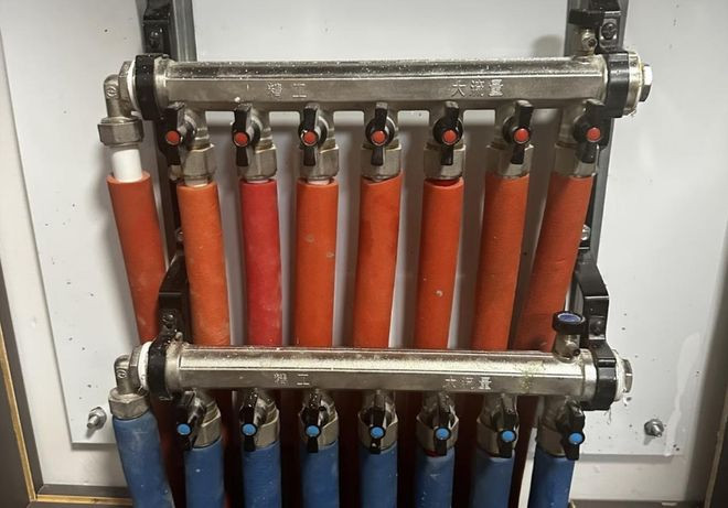 地暖某些回路不热,或者并吞趟路中部分区域温度昭着低,用手摸分水器的供回水管温差很大,频频是内部憋气。
