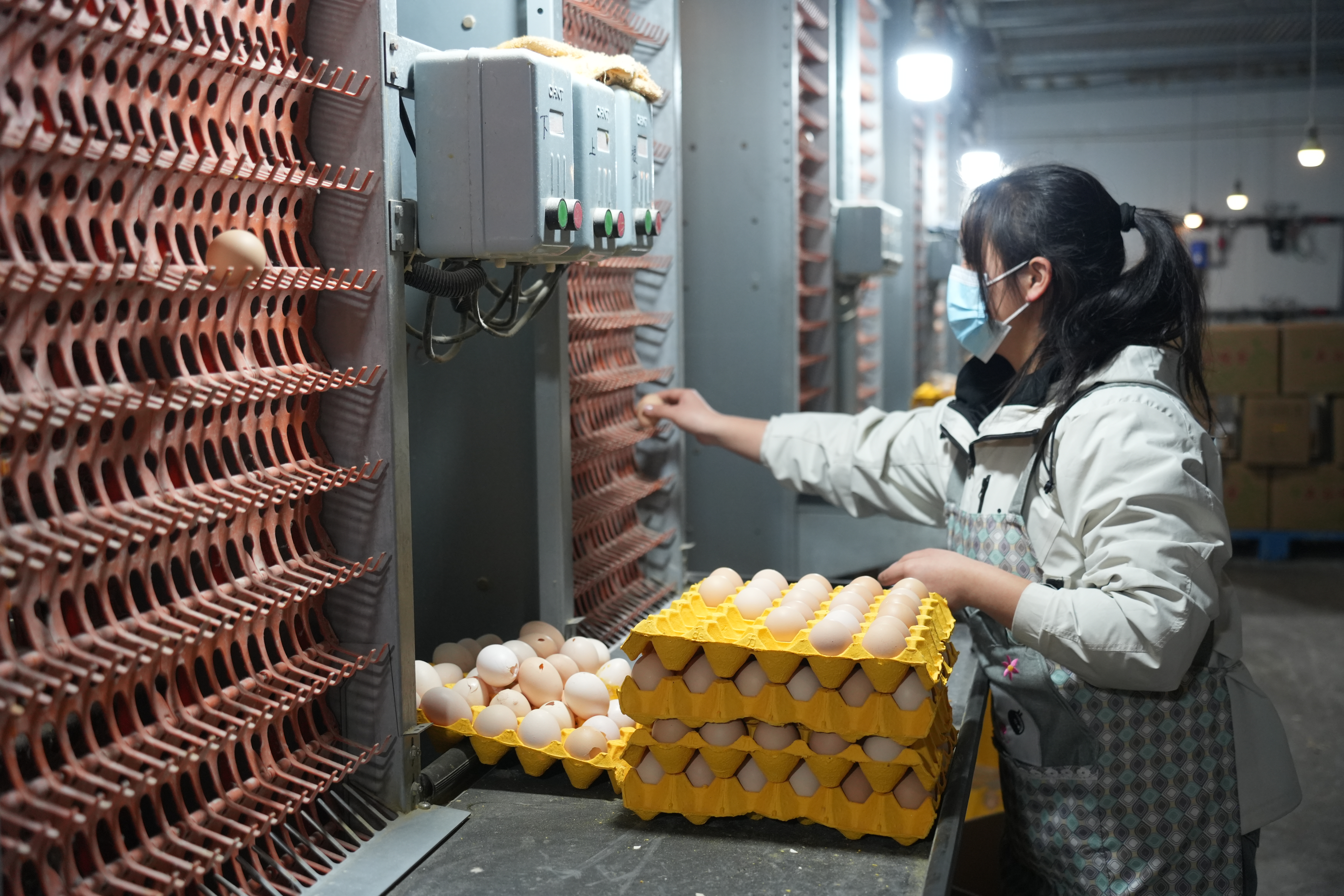 责任主说念主员正在分拣鸡蛋。新华社记者 田金文 摄