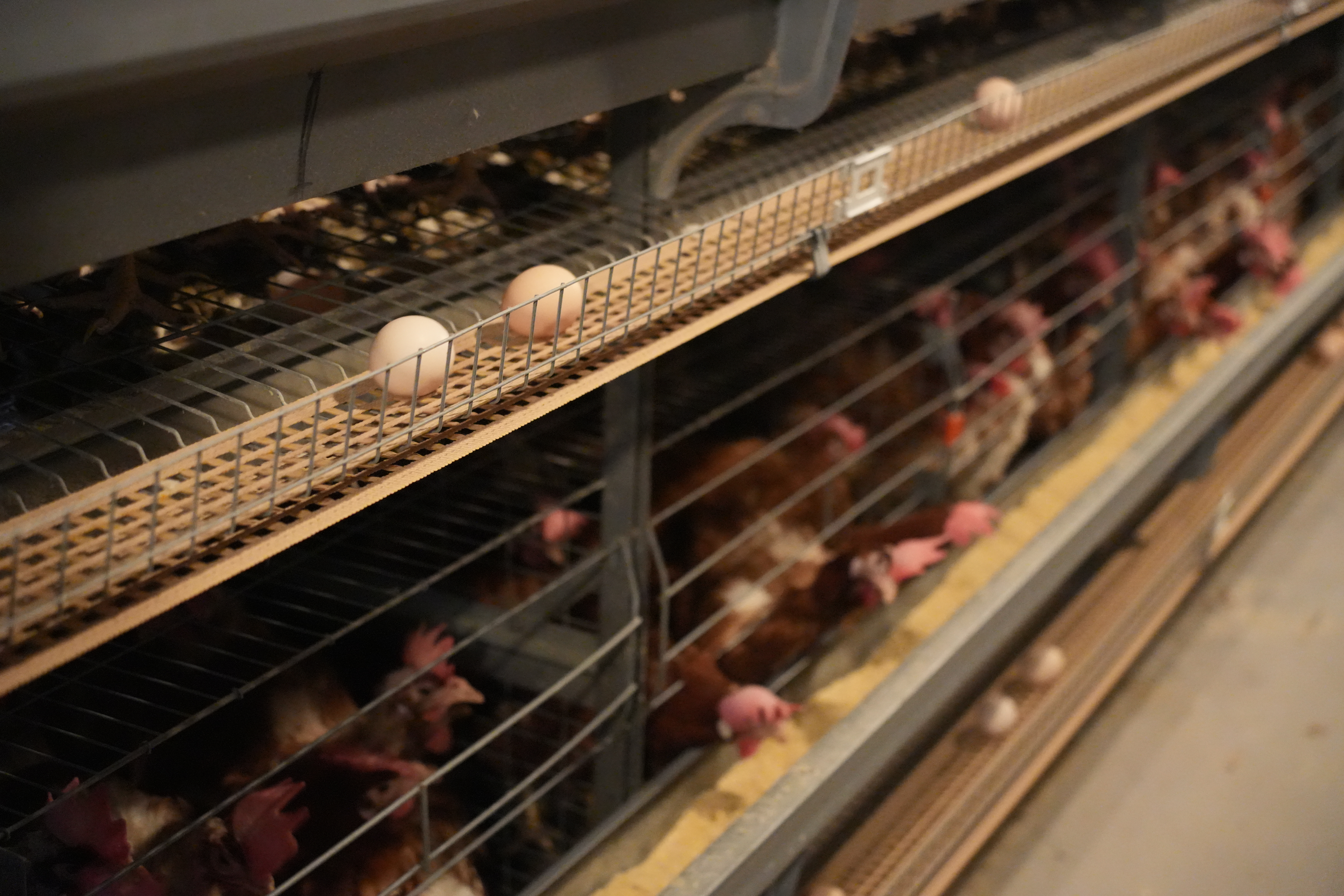 这是智能鸡舍内,新产的鸡蛋在传送带上待检。新华社记者 田金文 摄