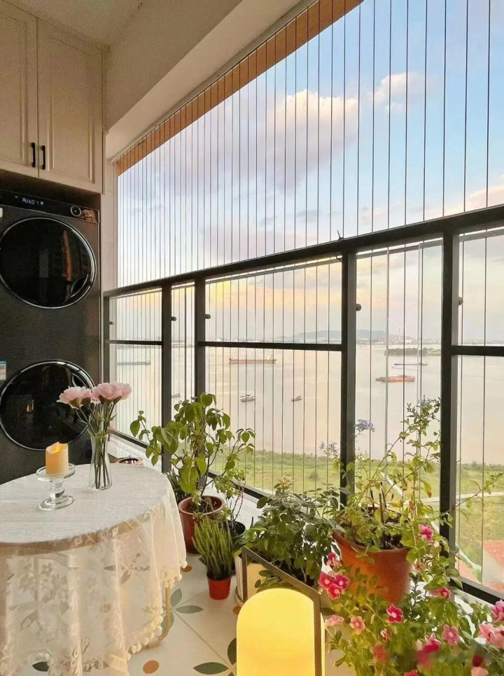 这就像是给阳台穿上了一件透明的保护衣,非凡稳妥有娃或者宠物的家庭,既擢升了安全性,又不妨碍享受阳光,造价相对其他决策也更低。然后赐与栽植花卉,既能够对环境加以好意思化,又能使空气得回净化。再摆上一两把毛糙桌椅,构建一个能让东说念主安闲的休息区。