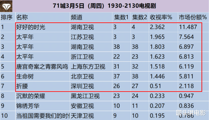 电视剧收视率名次榜,你在追哪一部?码字不易,宽饶关注点赞,留言参议。