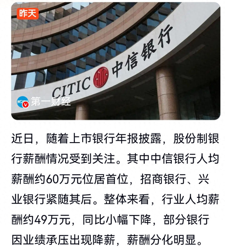 #银行薪酬 #中信银行 #打工东谈主 #年薪 #收入差距 #职场开元棋牌官网