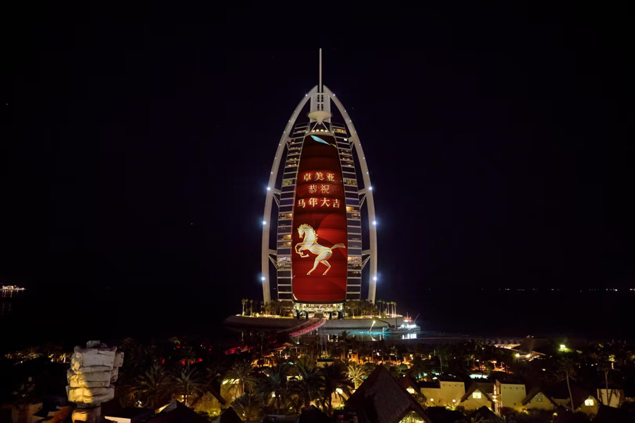 马年春节将至,迪拜全城欢庆中国传统佳节。2月以来,从地标灯光秀、新春大巡游,到央视总台春晚直播以及遍布全城的节日促销礼遇,迪拜各大景点、旅社餐饮及购物中心联手呈现丰富多彩的节庆活动。