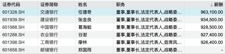 国有银行高管薪酬总数均下滑